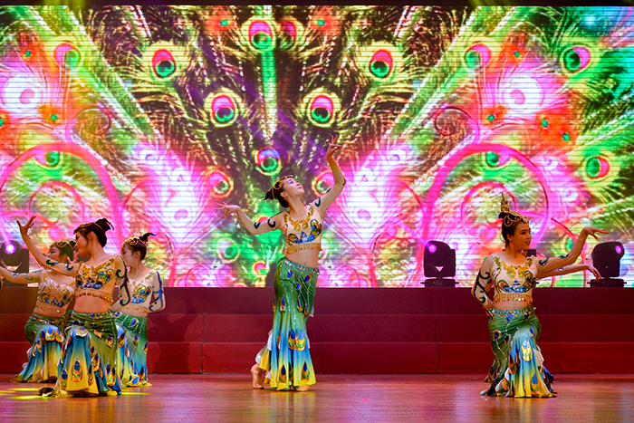 合唱《东方之珠》《共筑中国梦》气势飞扬,展现了仙职学子用青春和激情为祖国歌唱的进取姿态。二胡、钢琴、古筝等中西乐器合奏的《茉莉花》《绣金匾》《希望》委婉动听,优美的旋律让现场观众经历了一次难忘的音乐旅行。民族舞《碧波孔雀》舞姿轻盈、意境优美,别具一番风情。街舞、三句半、歌曲串烧、专业技能展示等节目各展风采、各有精彩。
