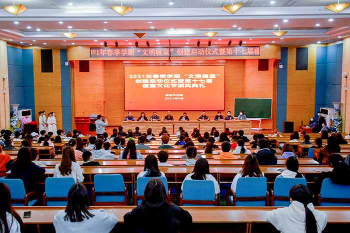 4月7日晚,2021年春季学期“文明寝室”创建活动启动仪式暨第十七届寝室文化节颁奖典礼在学术交流中心举行,表彰第十七届寝室文化节活动中的先进集体和先进个人,部署春季学期文明寝室创建工作。