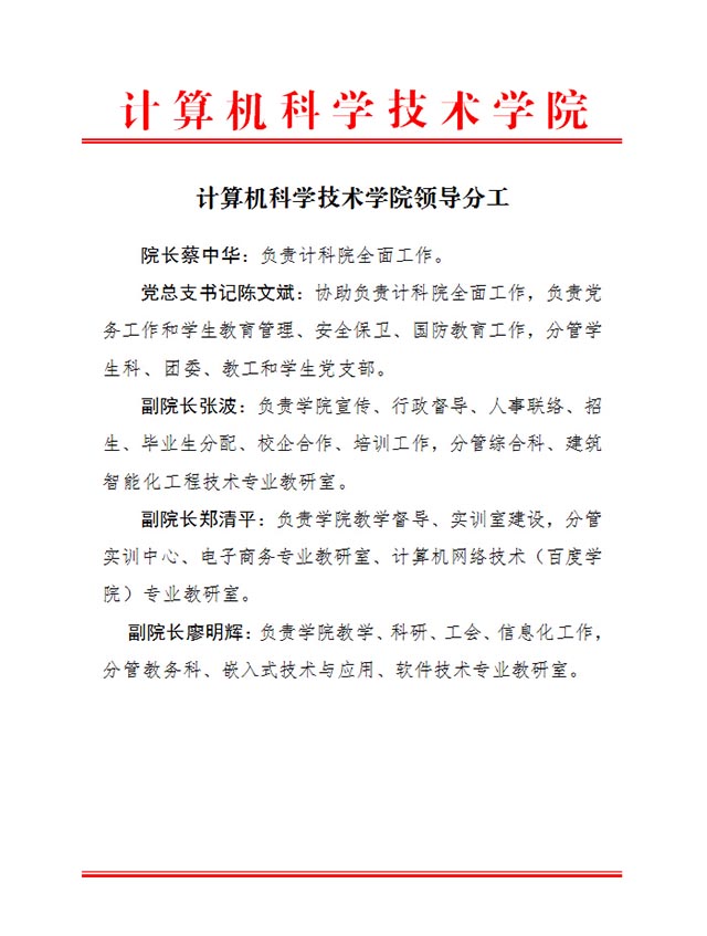 计算机科学技术学院领导分工