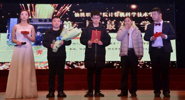 学院党委委员、副院长徐国洪(右)为“最美大学生”李继鹏颁奖