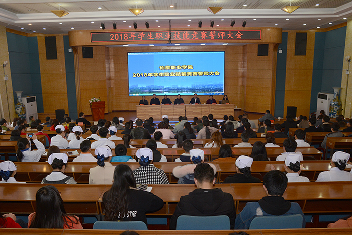 3月9日下午,我院在学术交流中心举行2018年学生职业技能竞赛誓师大会。党委书记郭百高出席会议并讲话。院长李立勇主持会议。党委副书记、纪委书记涂旭东宣读表彰2017年职业技能竞赛获奖师生的决定。副院长徐国洪布置2018年职业技能竞赛工作。学院领导、各二级学院负责人、竞赛指导教师、2017年竞赛获奖学生、2018年参赛学生代表400余人参加会议。