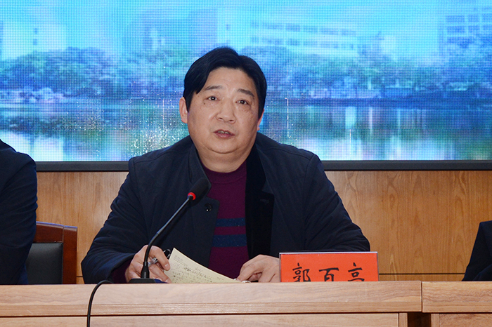 郭百高在讲话中指出,本次大会是向过去告别的交流会,是向新的梦想冲刺的动员会,是向对手亮剑的誓师会。全体参赛师生要全力以赴、精心备赛、再创佳绩。一是思想站位要高。要从学习贯彻习近平新时代中国特色社会主义思想和党的十九大精神的政治高度深刻认识做好技能竞赛工作的重要性,要从贯彻落实党的教育方针和立德树人根本任务的思想高度深刻认识做好技能竞赛工作的必要性,要从提高人才质量和推进优质高职院校建设的工作高度深刻认识做好技能竞赛工作的紧迫性,把技能竞赛备赛参赛作为增强办学实力、提高人才培养质量、磨炼学生思想品质和工匠精神的重要抓手,为建设社会主义现代化强国培养和输送高素质技术技能人才。二是目标定位要高。要认真总结2017年技能竞赛工作,进一步细化2018年技能竞赛备赛工作,敢于和高手过招,勇于与强手较量,国家级、省级职业技能竞赛成绩要有新的突破,全省综合排名要有新的提升。三是精神区位要高。要大员上阵、全员参与,把职业技能竞赛作为一把手工程切实抓紧抓好;要精心准备、及早动手,以只争朝夕、时不我待的精神狠抓落实;要吃透政策、博采众长,提高备赛训练的针对性和实效性;要顽强拼搏、全力以赴,把赛场作为战场,用汗水拼出荣誉。四是保障品位要高。要保障高标准的设备仪器,保障高水平的教练团队,保障高质量的训练过程,保障高额度的奖励措施,保障高强度的训练状态。