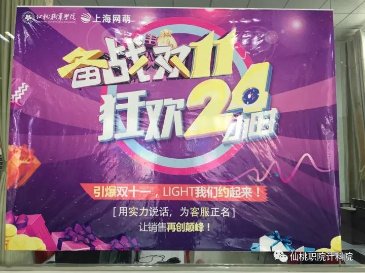 在生产性实训基地,和李科君在一起奋战的还有电商专业的130多名同学,从10月26日开始到11月1日,他们与学院电子商务职教集团内的合作企业——上海网萌网络科技有限公司一起备战双十一,130多名同学在上海网萌公司专业讲师的指导下,熟悉企业文化,接受客服培训,学习销售技巧,模拟上机训练,11月1日开始进入运营平台实战。从11月10日晚上的8点一直到11月11日24点,他们将分批轮岗,为购物的买家提供24小时咨询服务。