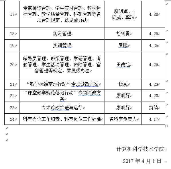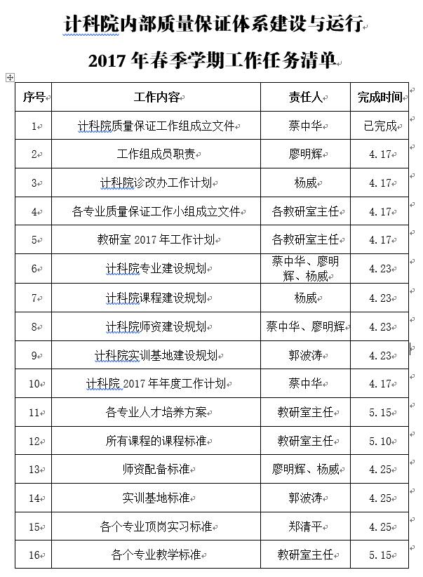 计科院内部质量保证体系建设与运行2017年春季学期工作任务清单
