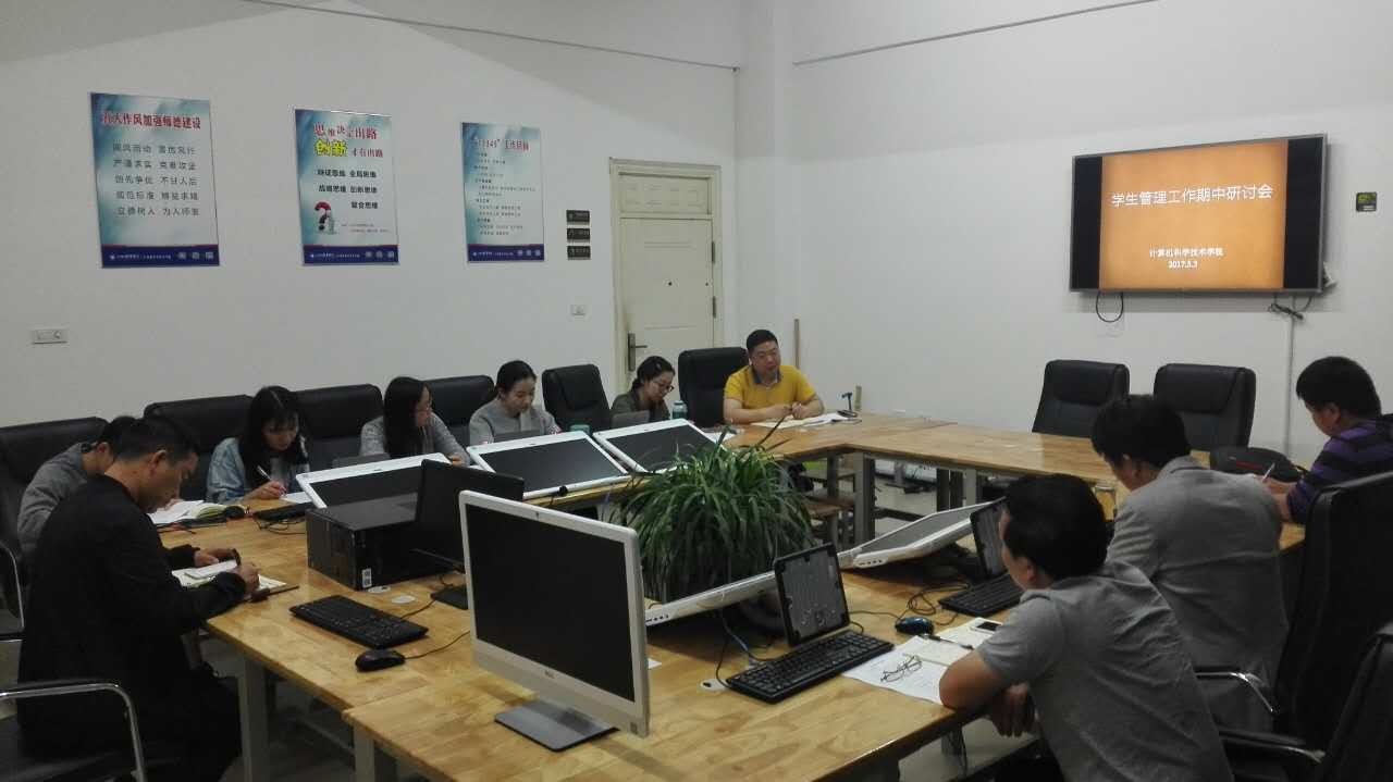 5月3日晚,计科院学生管理工作期中研讨会在信息大楼403召开,全体学生管理工作人员参加本次研讨会,总结前期工作,交流班级管理工作经验。