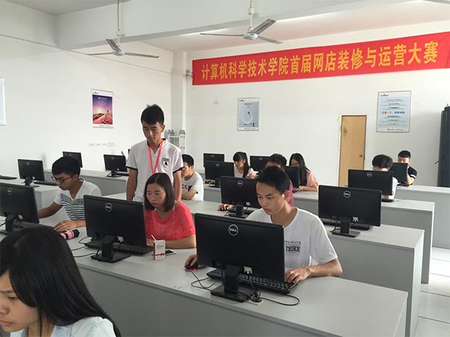 6月12日,计算机科学技术学院首届电子商务网店装修与运营大赛总决赛在信息大楼502实训室举行,20名选手经过初赛选拔晋级决赛。学院院长李立勇亲临现场观摩指导比赛。