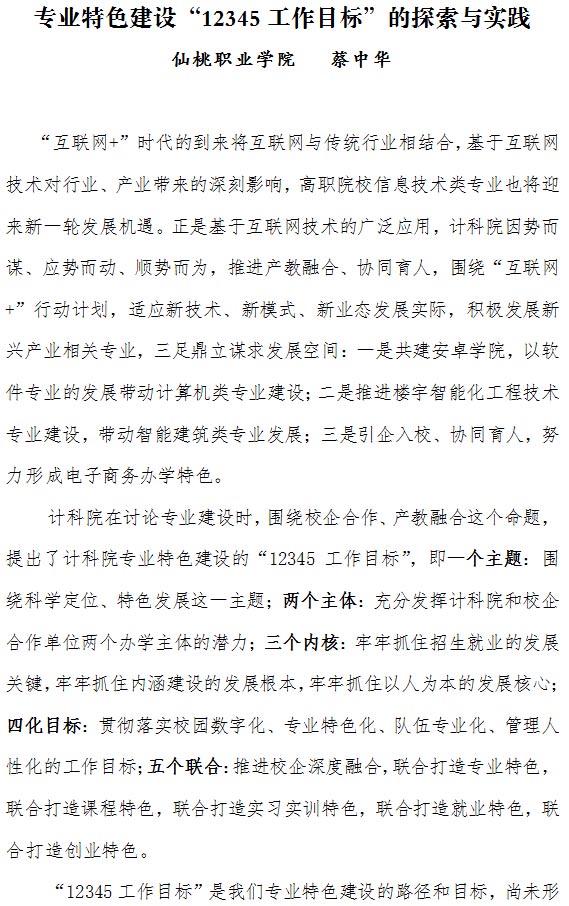 专业特色建设“12345工作目标”的探索与实践