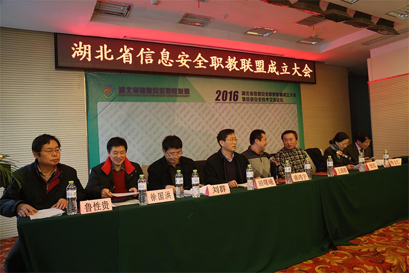 1月10日,湖北省信息安全职教联盟成立大会在武汉隆重召开,该联盟集合了我省相关院校、科研院所及企事业单位50余家成员单位,旨在实现职业教育资源的优化配置,提高信息安全专业职业教育质量,服务经济和社会发展。全国高等院校计算机基础教育研究会高职高专专业委员会秘书长盛鸿宇,湖北省教育厅教科院刘群,湖北日报社新媒体集团大数据中心主任、省委省政府高级舆情分析师傅文仁,湖北省信息技术教学指导委员会主任王路群,湖北生物科技职业学院党委书记、校长田曙曦,湖北青年职业学院党委书记张红,仙桃职业学院副校长徐国洪等出席本次会议。