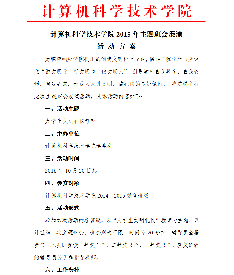 计算机科学技术学院2015年主题班会展演活动方案