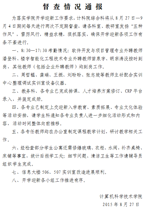 【开学工作】8月27日督查情况通报