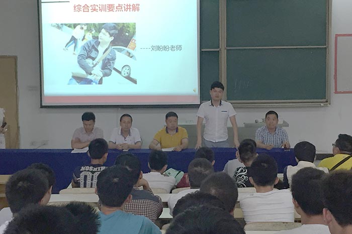 计科院院长蔡中华强调了本次综合实训的重要性和意义,要求实训教师充分发扬“五大作风”,精益求精,做好人梯,不让一个学生掉队,全体学生要珍惜本次学习机会,高标准、严要求,做到技能考核人人过关。