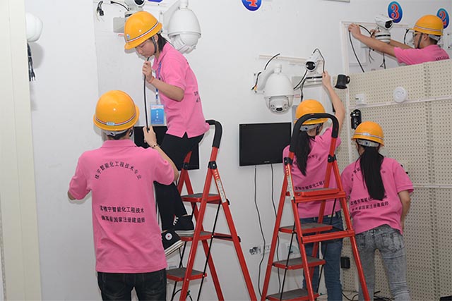比赛分为“系统设计与制图”、“安防报警系统”和“视频监控系统”的安装与调试三个部分,首先根据大赛提供的相关设备和任务书中的功能要求,在计算机上利用CAD软件完成接线图的设计,然后按照图纸安装报警系统和监控系统,完成主动红外对射、被动吸顶红外探测器、被动红外幕帘探测器等报警器件和高速球云台摄像机、一体化枪型摄像机、红外摄像机、视频服务器、硬盘录像机等监控器件的安装与调试,通过系统模块的参数设置和编程,实现监视器的视频监控、远程访问和报警联动录像等安防功能。赛场上,6组18名学生按照国家职业技能大赛的标准,在近4个小时的时间里,全部完成了竞赛目标。竞赛中,选手们的职业道德、团队协作精神等职业素养也得到了提升。