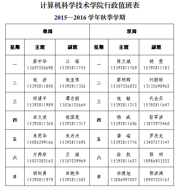 1.按照要求认真填写《计算机科学技术学院行政值班日志》;
