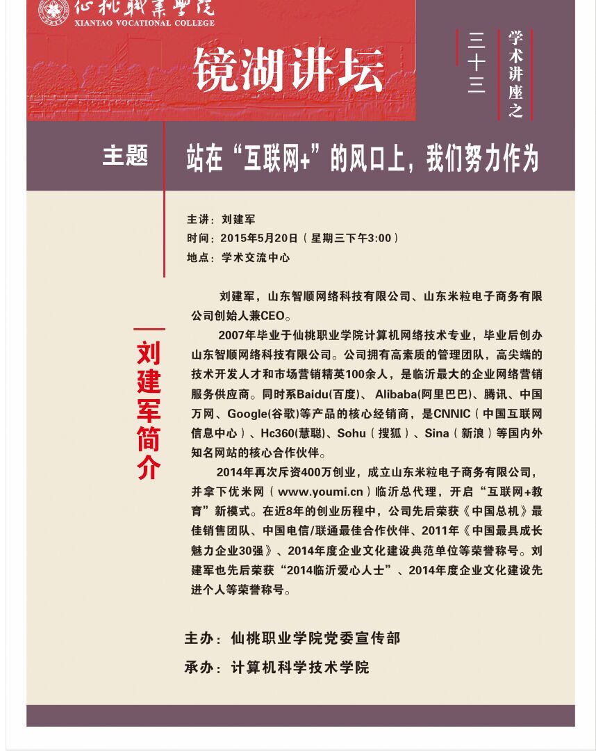 镜湖讲坛:站在“互联网+”的风口上,我们努力作为
