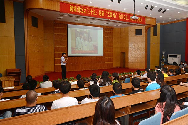 以《将创业进行到底》为题,结合自己网络时代的创业经历和体会,用丰富的实例和数据,分析在互联网、大数据、云计算等科技不断发展的背景下,互联网时代与工业时代不同的价值链、组织架构和商业模式,重新审视市场、用户、产品、企业价值链乃至整个商业生态,刘建军向计科院全体学生讲解了互联网思维核心要素,包括战略定位、商业模式等五大模块,专注思维、服务思维、创新思维等十大思维以及解决用户的痛点、做出极致的产品、颠覆式创新等二十法则,从思想上鼓舞了学生们的就业创业激情。刘建军同时告诫学子们,“没有梦想,路途再平坦,也无法前行。知行合一,什么时刻开始都不嫌晚。”勉励学子们从今天起,认定自己的人生目标,重燃生活的激情,发现自身的强大,抓住机遇,在互联网时代努力奔跑,创造自己人生的辉煌。