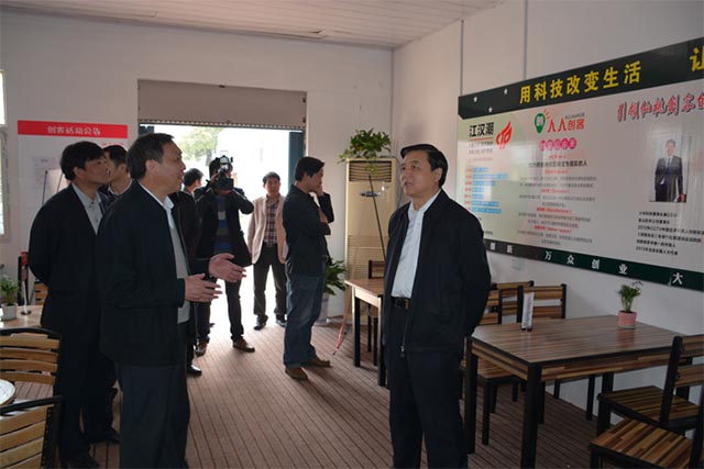 3月27日,市委书记冯云乔、市委组织部长郭志泉、副市长印家利等带领市直相关部门专程来到我院调研。冯云乔一行在学院领导袁全汉、李立勇的陪同下分别察看他拍档和江汉潮创客空间。冯云乔强调,要适应新业态,培植新标杆,打造引爆点,努力形成大众创业、万众创新的新格局。