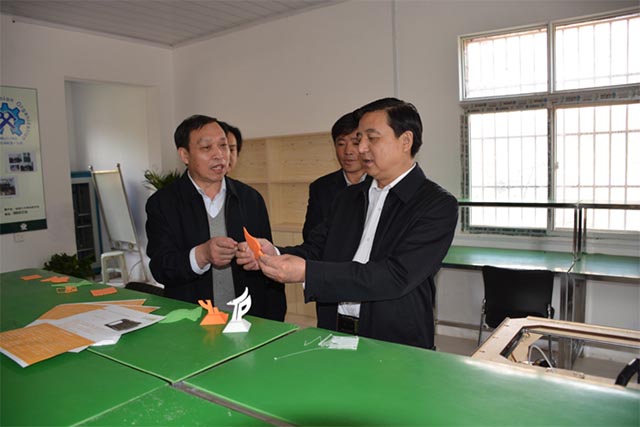 市政协副主席、院长袁全汉向市委书记冯云乔一行介绍创业学生的3D打印作品