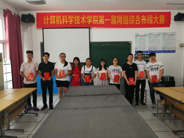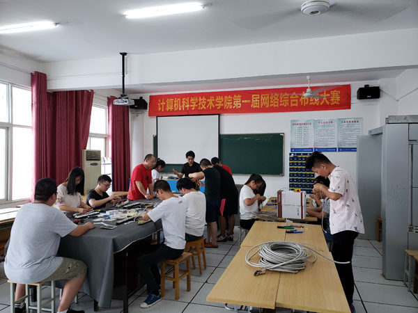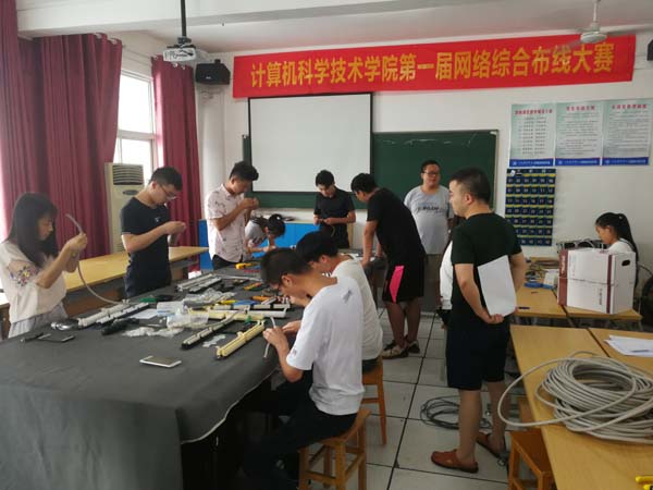 2018年6月8日下午2:30,计算机科学技术学院第一届网络综合布线大赛在信息大楼302举行。本次比赛共有10名选手参加决赛,最终来自软件1701班的王佑强获得一等奖,计网1701班的汪扬名、沈艳辉获得二等奖;计网1601班的高潇威、叶又彪、计网1701班的衡诗毅获得三等奖。
