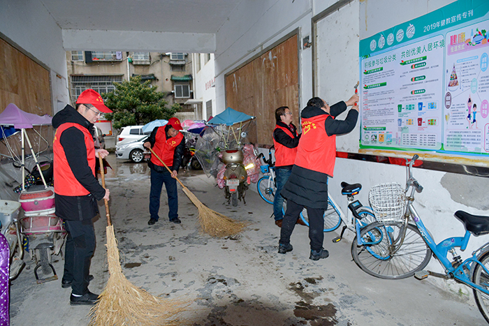 我院干部职工顶风冒雨,分别来到商铺、菜场、居民家中发放创城宣传资料,讲解创城知识,收集意见建议,开展义务劳动。在电信宿舍区里,几位老人认真填写创城调查问卷,希望为老百姓解决更多的实际问题,把我们的城市建设得更加美好。在老八中居民区楼道,大家拿起扫帚、铁铲,清扫楼道,清除“牛皮癣”,社区环境更加整洁有序。