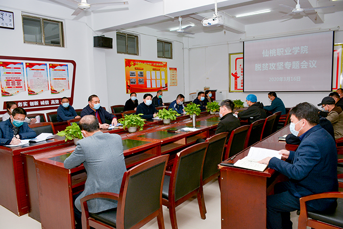 党委副书记梁晓华,副院长谢从堂,工会主席王浩,党委委员刘泳梅、陈伟等学院领导及二级院校、部分职能处室主要负责人、扶贫办工作人员、部分包保干部参加会议。