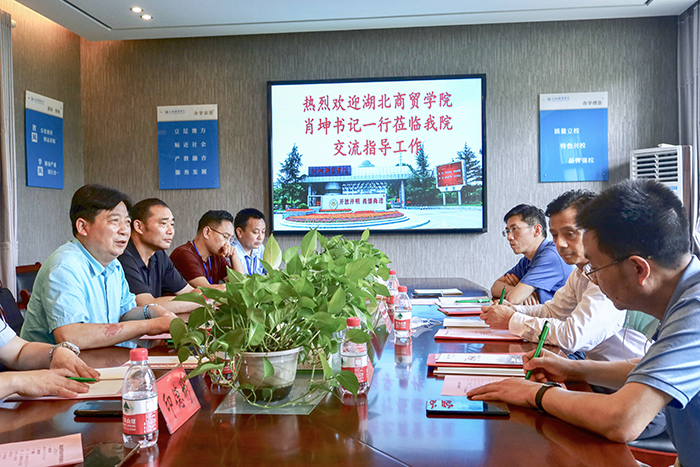 肖坤对我院的热情接待表示感谢,介绍了湖北商贸学院的基本情况,希望进一步加强两校合作,促进两校优势互补、共同发展。