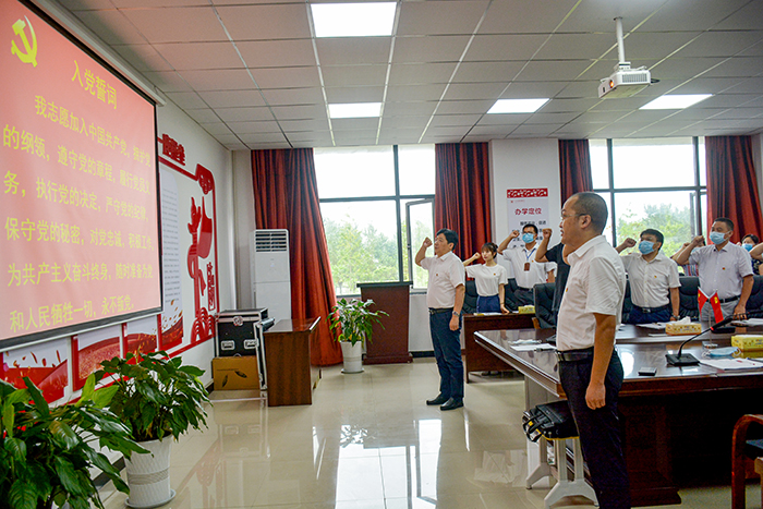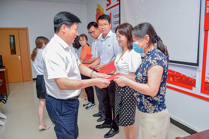 党课前,郭百高与大家一起重温入党誓词,并向党员代表赠送政治生日贺卡。