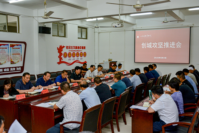 8月4日下午,党委书记郭百高主持召开全院创城攻坚推进会,传达学习全市创建全国文明城市冲刺动员大会精神,部署我院相关工作。院长李立勇等学院领导和各二级院校、职能处室主要负责人参加会议。
