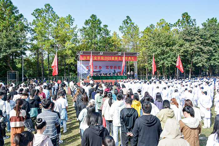 又是一年丰收景,青春仙职迎新人。10月22日上午,我院在田径运动场隆重举行2020级新生开学典礼。党委书记郭百高、院长李立勇等学院领导出席典礼。副院长罗功宇宣读《仙桃职业学院学生日常行为规范(试行)》。各部门和相关合作单位主要负责人,2020级新生任课教师、辅导员和4000余名新生参加。李立勇主持典礼。