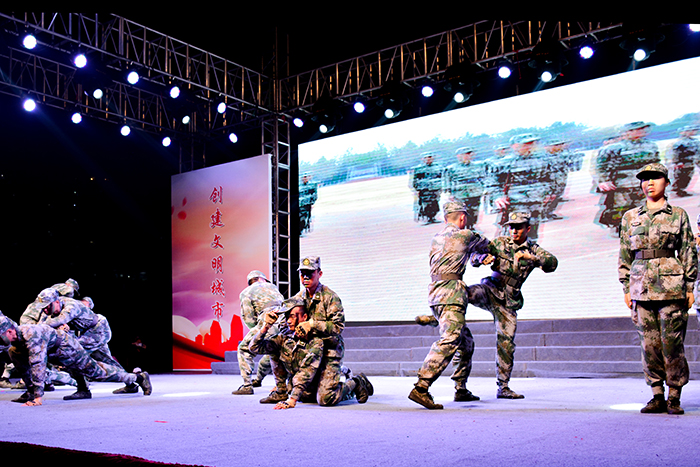 晚会在舞蹈《盛世花开》中拉开帷幕,10个精彩纷呈的节目依次上演,让现场观众目不暇接。女声独唱《文明在哪里》、诗朗诵《文明有礼 最美仙桃》紧扣晚会主题;男女声二重唱《无问》、街舞《舞动灵魂》、军事训练表演《仙职好儿女》展示了仙职学子的青春和激情;民族舞《碧波孔雀》意境优美、舞姿曼妙,别具一番风情;幼儿篮球操《红色篮球梦》展现了附属幼儿园小朋友们的童稚可爱;《山歌唱出好兆头》《我们的祖国歌甜花香》《幸福中国一起走》等一首首耳熟能详的歌曲在体育广场回荡,赢得了现场观众的阵阵掌声。