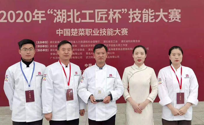 在2020年“湖北工匠杯”楚菜职业技能大赛中,经济与管理学院、理工中专师生徐元茂、陈军、谢巧红、刘云、王同佶夺得团体特金奖。同时,徐元茂获热菜类特金奖,陈军获冷拼雕刻类特金奖,谢巧红获面点类特金奖,刘云获宴会服务类特金奖,王同佶获热菜类金奖。