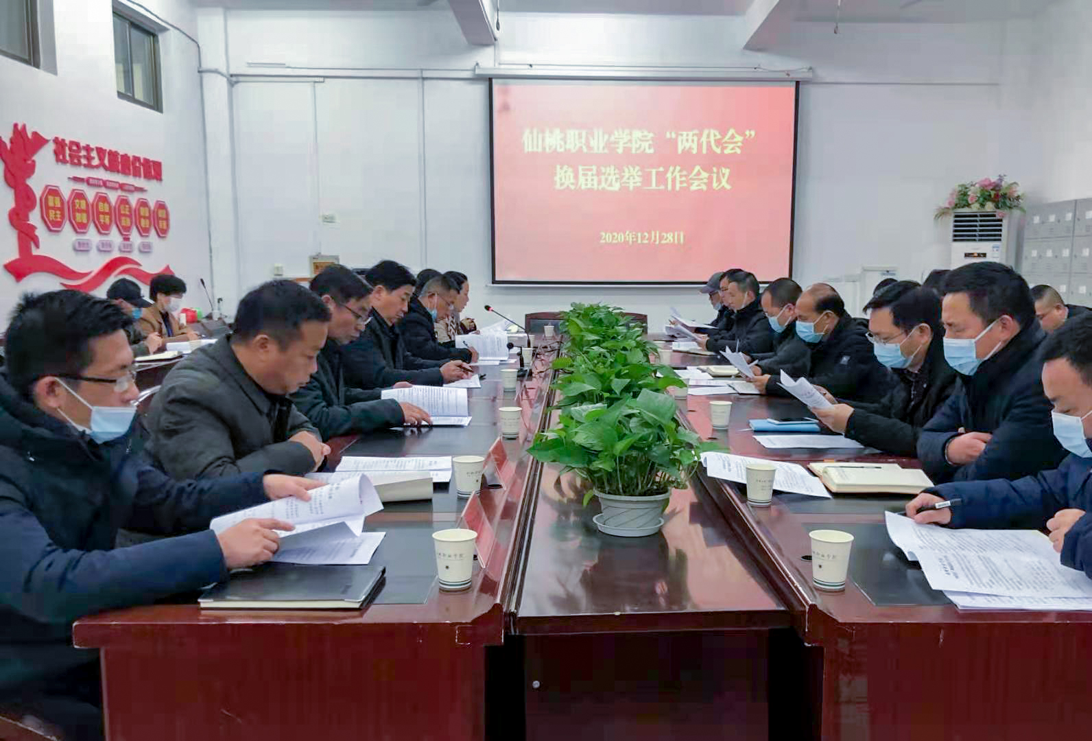 12月28日上午,我院召开“两代会”换届选举工作会议。党委书记郭百高出席会议并讲话。党委副书记梁晓华主持会议。换届选举工作领导小组成员,各单位、各部门主要负责人参加会议。