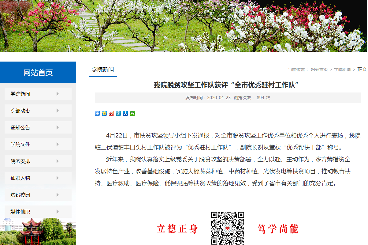 逐梦而行,绽放芳华。在青春仙职,每天叫醒我的不是清晨的阳光,而是立德正身、笃学尚能的校训。