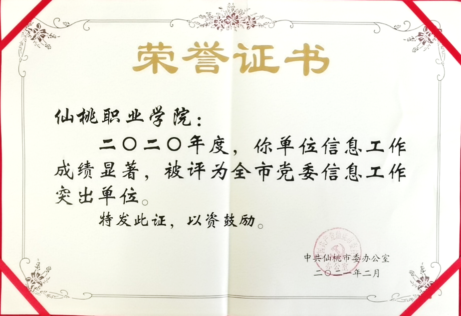 近日,市委办下发《关于表扬2020年度全市党委信息工作突出单位和个人的通报》,我院被评为“全市党委信息工作突出单位”,党办主任黄爱军被评为“全市党委信息工作突出个人”。