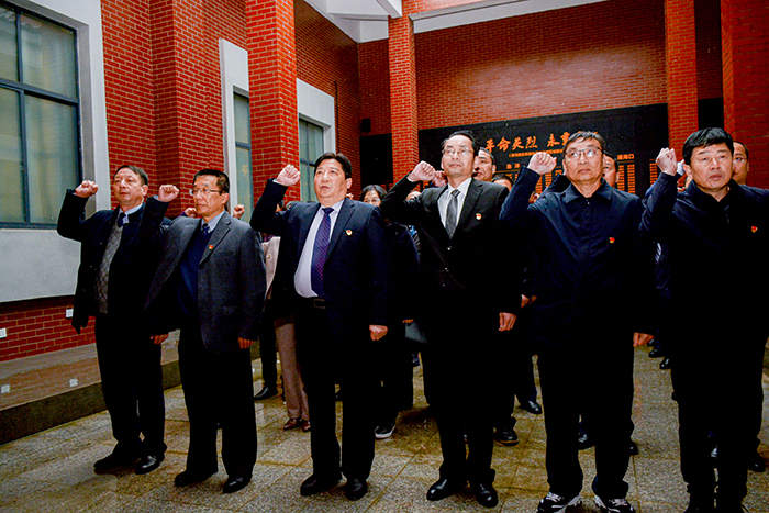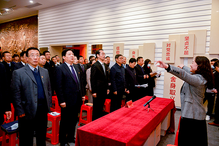 “我志愿加入中国共产党,拥护党的纲领,遵守党的章程……”面对鲜艳的党旗,在党委书记郭百高领誓下,参学党员举起右拳,一起重温入党誓词。