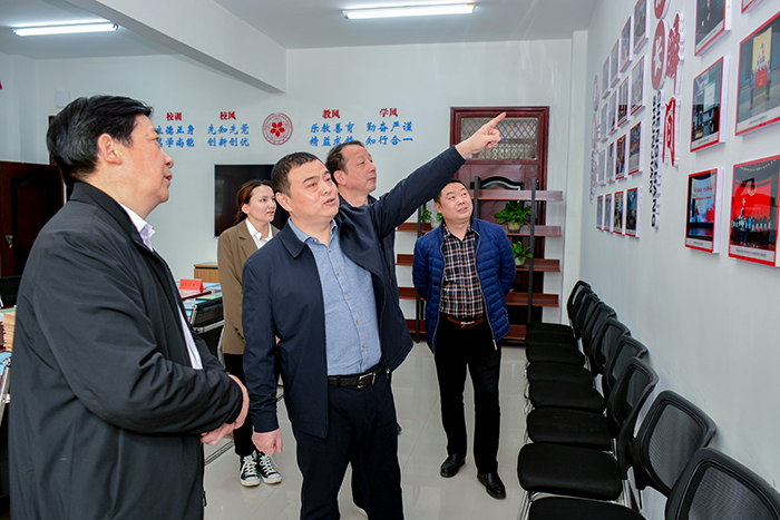 在学院领导陪同下,段旭辉实地查看了新区建设工地、民族团结办公室、心理健康教育中心等场所。