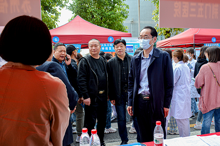 党委书记郭百高、院长李立勇等学院领导来到见面会现场,与用人单位和应聘学生进行面对面交流,了解用人单位岗位需求和学生求职意向。