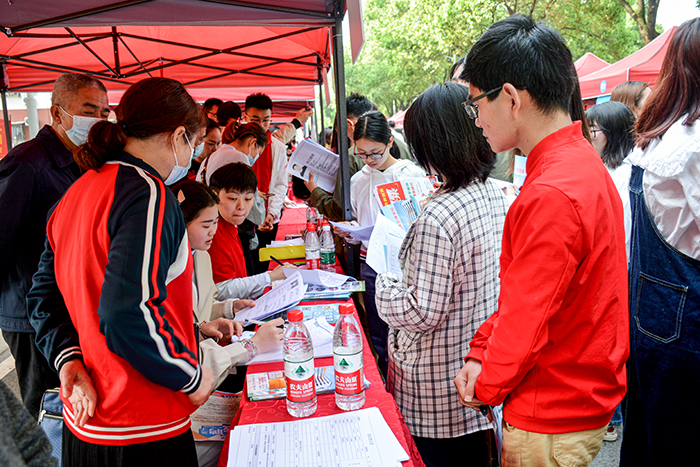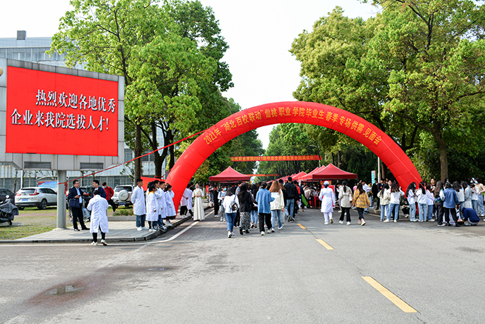 4月27日,我院举行“湖北百校联动”毕业生专场供需见面会,来自省内外的128家用人单位入场招聘,提供就业岗位6800多个,2000余名毕业生参加应聘。