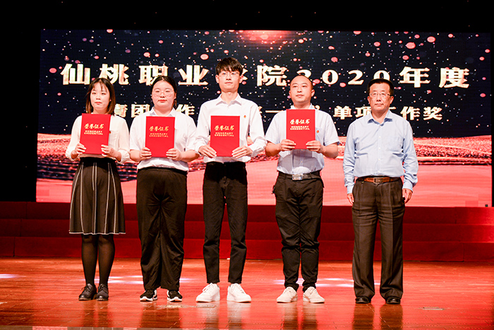 在热烈的掌声中,全院五四红旗团总支、全院五四红旗团支部、十佳团支部书记、优秀共青团干部、优秀共青团员、“一院一品”共青团工作品牌等先进集体和个人先后上台受奖。