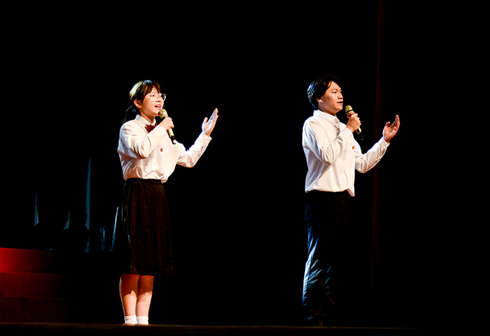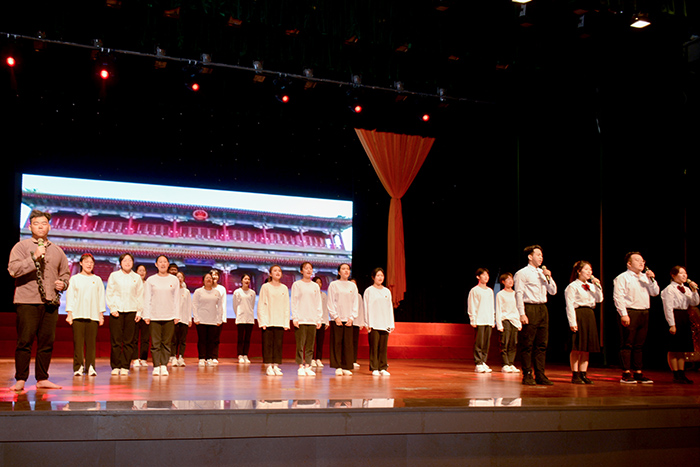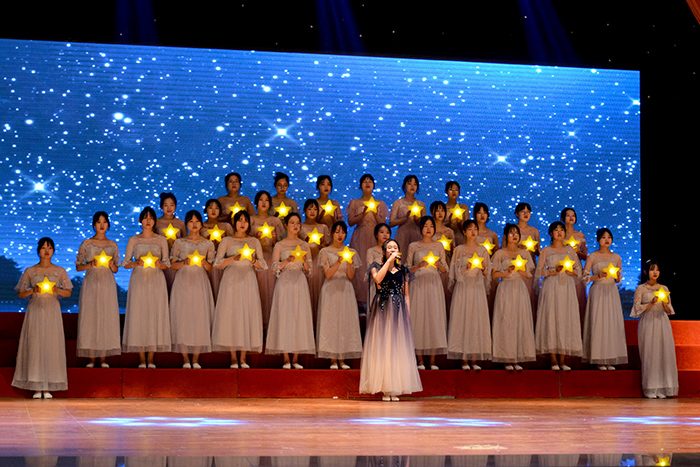 颁奖典礼上,朗诵小组唱《仰望星空》、诗朗诵《青春最美的样子》、情景剧《可爱的中国——与时空对话》、舞蹈《灯火里的中国》等节目依次上演,充分展示了我院青年学子赓续红色基因、矢志拼搏奋斗的青春风采。
