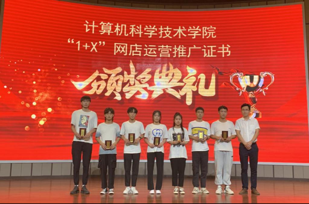 副院长廖明辉宣读第三届电子商务技能大赛获奖名单和网店运营推广1+X证书优秀学员名单