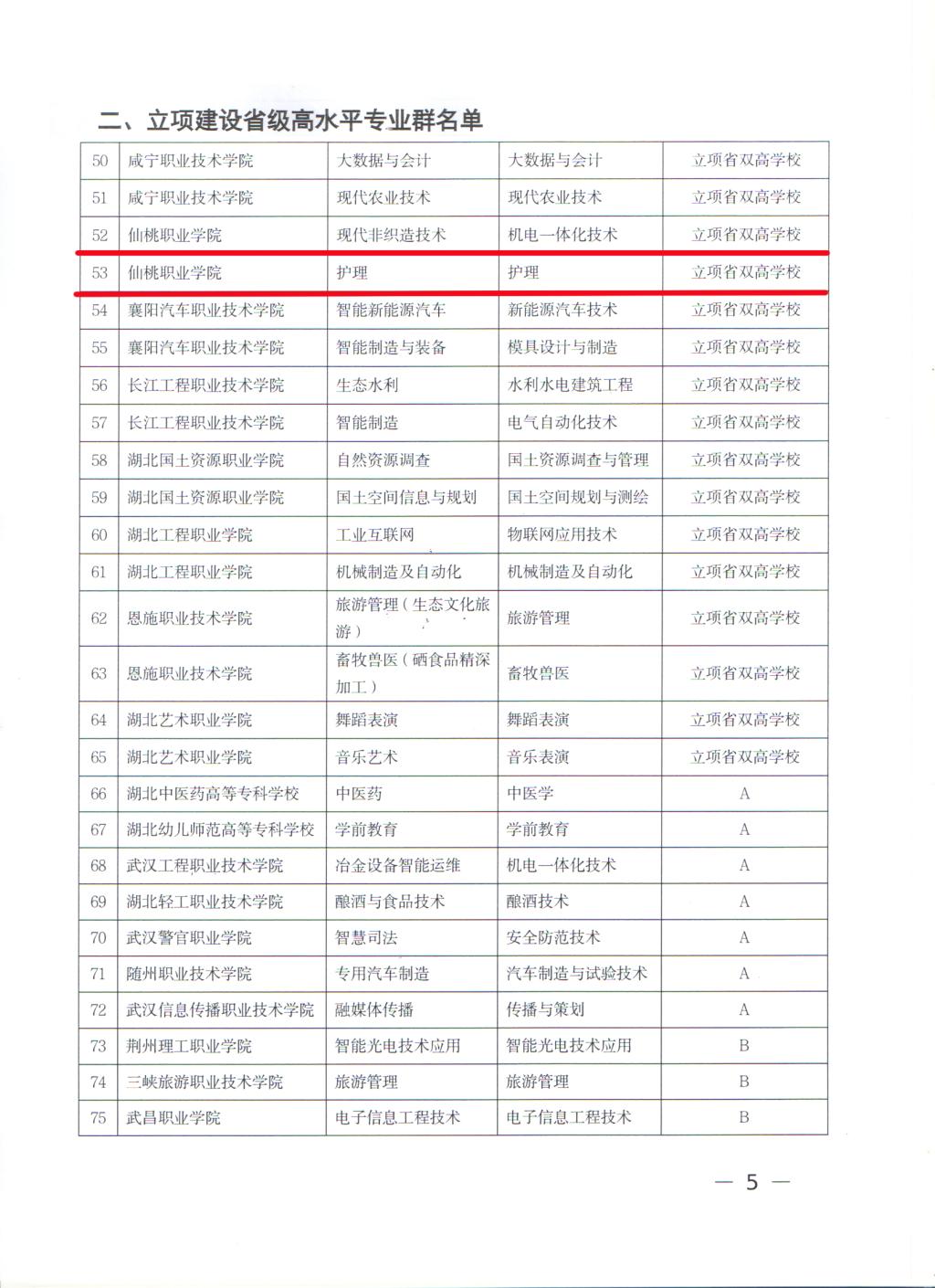 1月7日,省教育厅、省财政厅下发《关于公布湖北省高水平高职院校和专业群建设计划立项建设单位名单的通知》,学院获批立项建设省级高水平高职院校,现代非织造技术、护理专业群获批立项建设省级高水平专业群。这是对学院整体办学实力的充分认可,也标志着学院“十四五”事业发展实现良好开局。